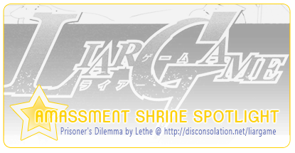 Welcome to Joker’s Wild, a one page shrine dedicated to the manga Liar Game by Shinobu Kaitani, created as part of Amassment’s One Page, One Month: ENCORE Marathon.